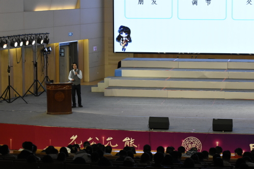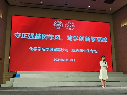 第三位分享嘉宾是2019级化学专业本科毕业生徐子宁,他以风趣幽默的方式分享了自身在学习过程中看待问题和解决问题的见解。学习过程要根据实际情况在“拿来主义”和“深挖主义”两种选择中做出判断,思考问题可以按照“提出问题-构建模型-解决问题”的方式进行。徐子宁引用“10000小时”定律说明了长时间努力的重要性,希望大家不要将时间花费在自我感动上,日常做好自我反思,及时调整心态。