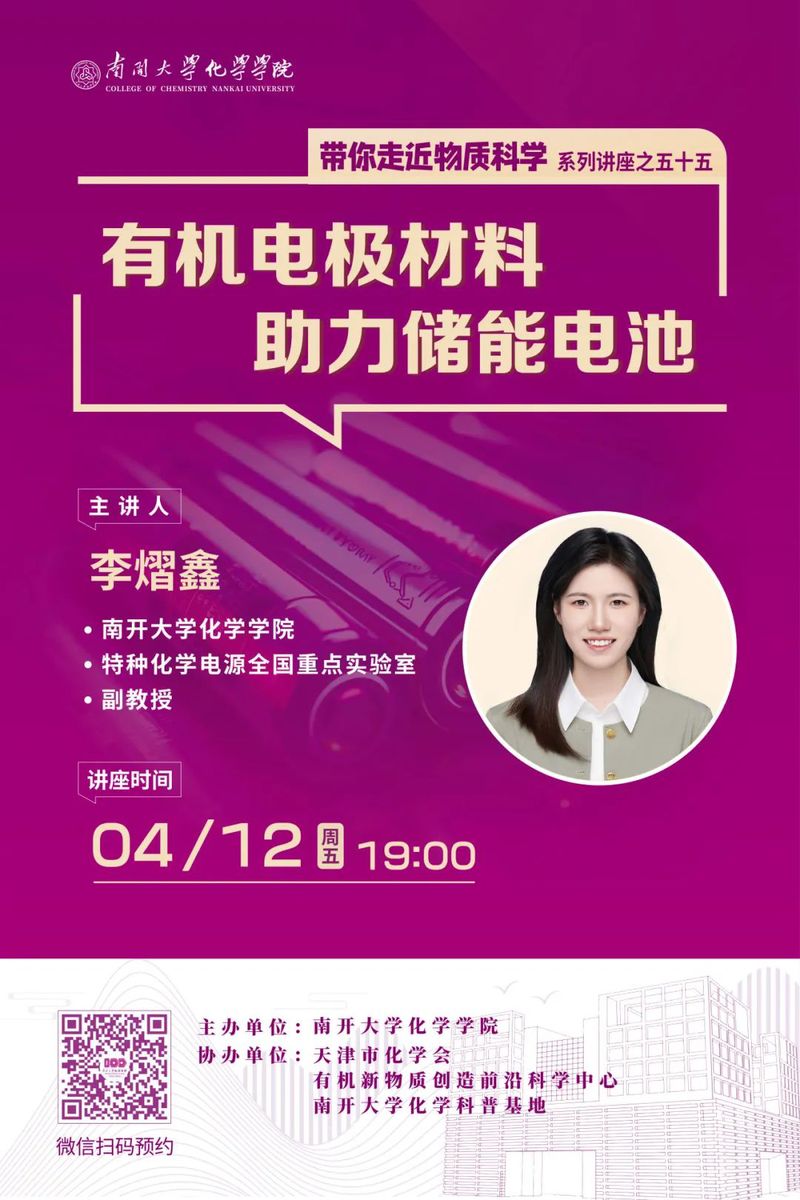 带你走近物质科学系列讲座之五十五:有机电极材料助力储能电池