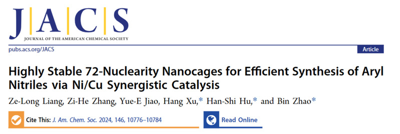 本研究通过自下而上的策略结合中国传统榫卯结构构筑了72核笼状金属-有机框架材料,随后通过金属掺杂实现Cu/Ni协同高效催化芳基腈的合成,这是首例采用甲酰胺作为氰源合成芳基腈的异相催化剂。