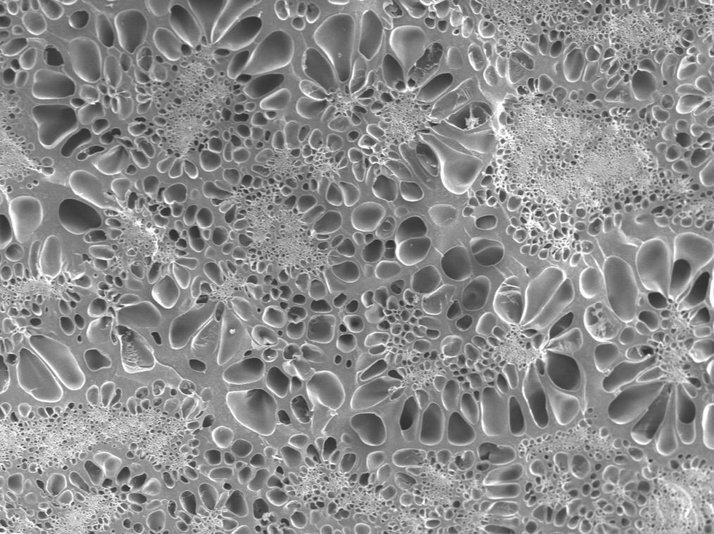 绽放-扫描电镜-水凝胶样品,使用JSM-7900F扫描电镜拍摄,像一朵朵优美的花在绽放