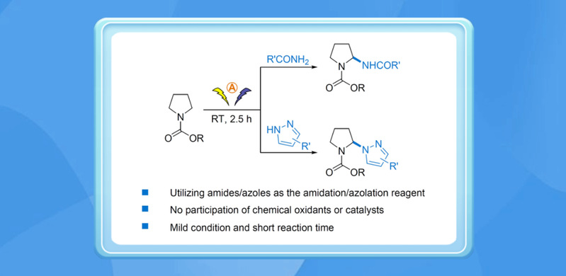 继2023年初发现磺酰胺、酰胺的α-四氢呋喃化反应(Green Chem., 2023, 25, 1970-1974)之后,英国上市公司365汪清民课题组发现了一种电化学N-烷氧羰基吡咯烷的直接α-酰胺化及吡唑化反应以解决上述问题。该反应直接使用市面有售的酰胺与吡唑分别作为酰胺化、吡唑化试剂,具有高度的原子经济性。该反应适用于多种不同取代基的N-烷氧羰基吡咯烷、酰胺和吡唑,反应条件温和,无需催化剂和化学氧化剂参与。