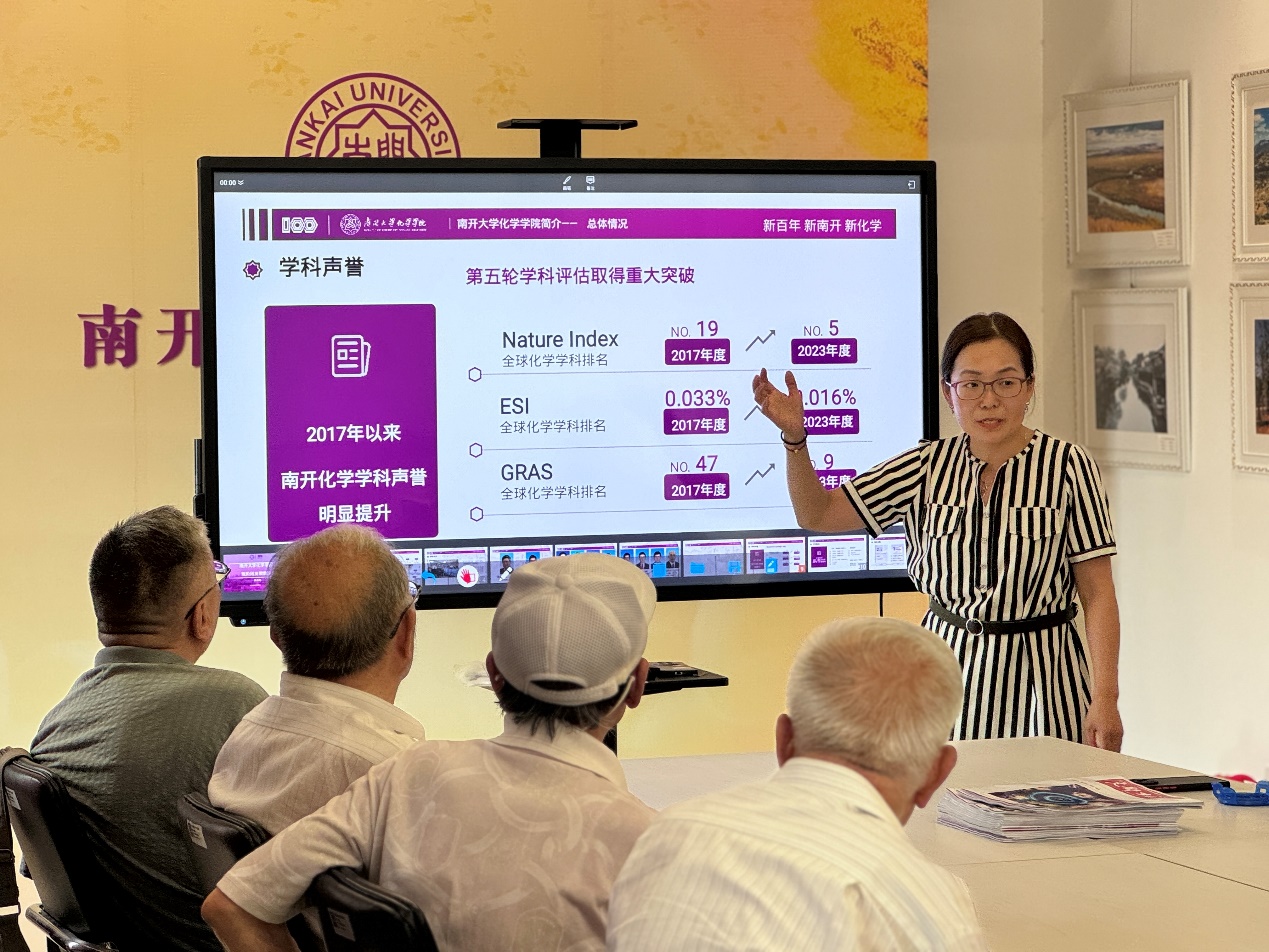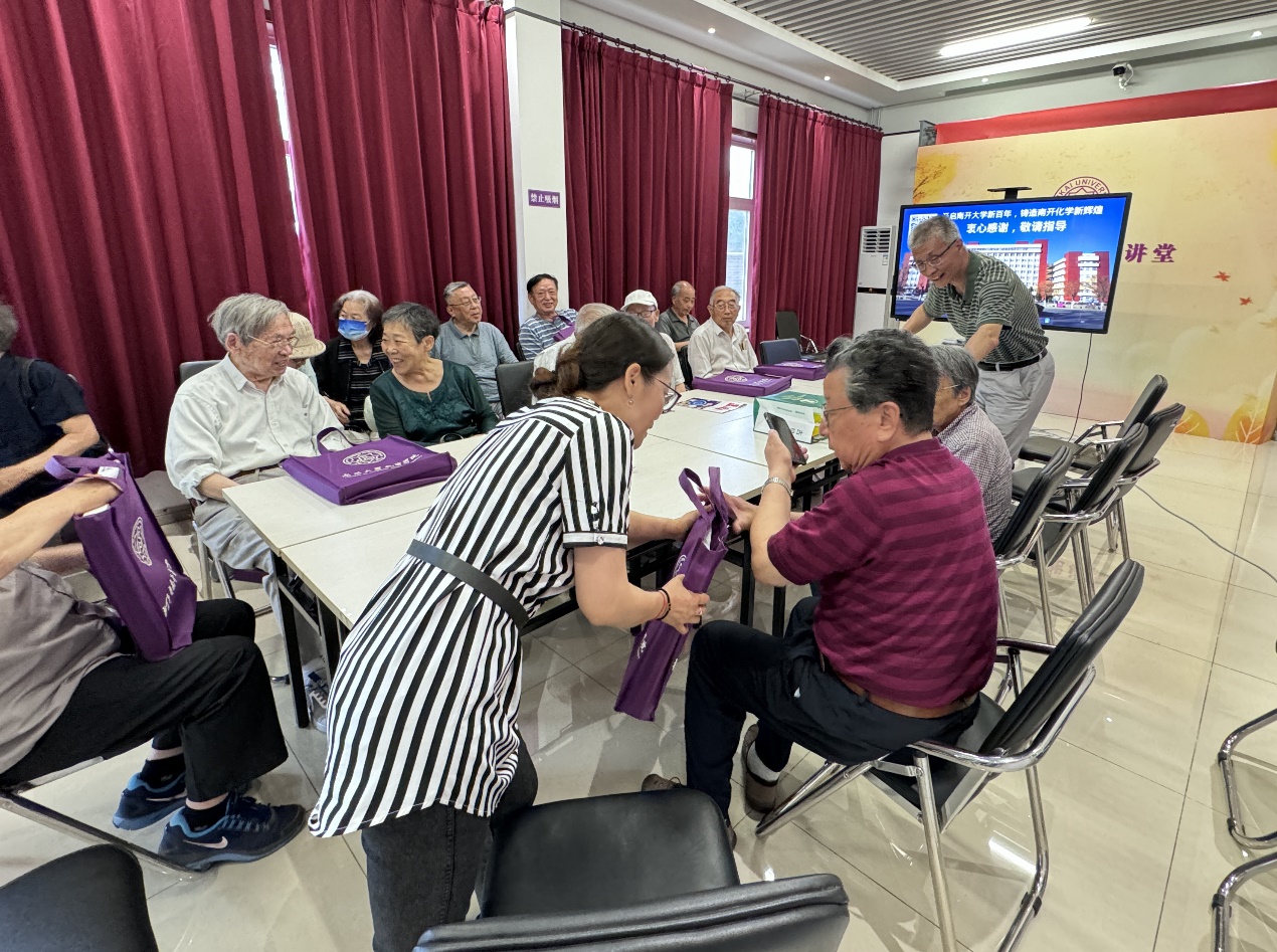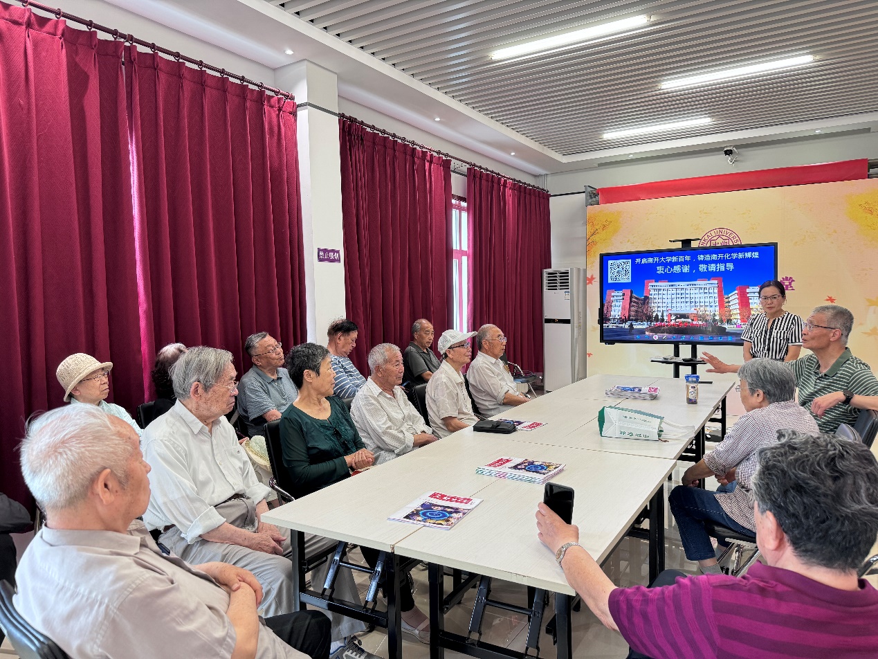 柳凌艳首先感谢退休教师在学科发展历程中做出的重要贡献,是传承南开化学红色基因,赓续百年科教报国精神的重要力量和宝贵财富。很多老师退休后仍一如既往关注和支持公司公司发展,积极参与到党建引领、思政育人、学科发展、队伍建设的各项工作中,为推动“一流”团队建设和服务社会做出了重要贡献。