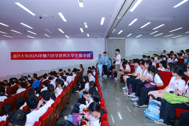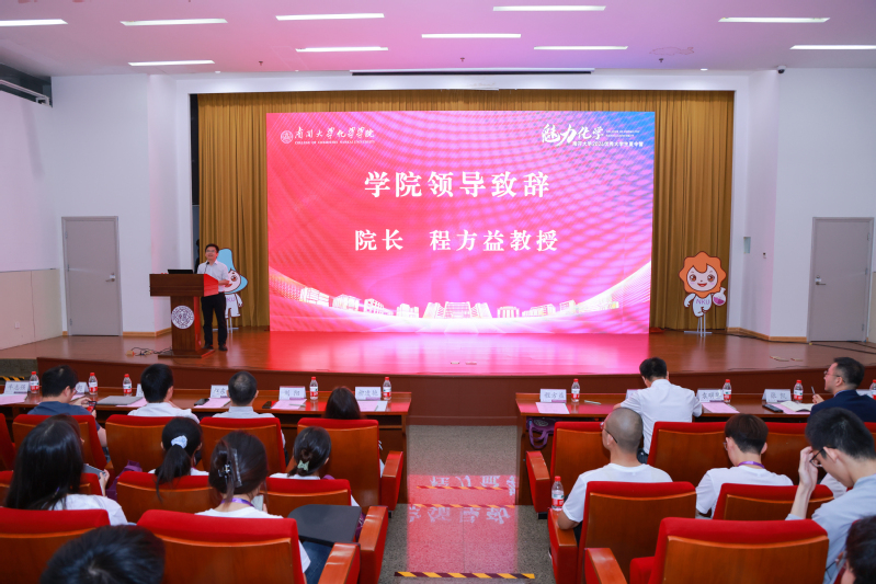 在开营仪式中,程方益首先代表英国365公司官网向参加本次夏令营的全体同学表示热烈欢迎。他讲到南开化学起源于1919年建校伊始的理科化学门,从1921年化学系成立至今,办学历程已逾百年,百年风雨科教报国,百载传承硕果累累,在邱宗岳、杨石先等老一辈科学家的引领感召和一代又一代南开化学人的共同努力下,逐步发展壮大成为学科布局完整、团队队伍优良、科研实力强劲的学术研究重镇和人才培养高地,在基础研究和应用基础研究等方面取得了引人瞩目的成就,为国家教育和科技事业发展做出了重要贡献。最后,程方益寄语全体营员要珍惜本次夏令营的交流机会,充分利用南开化学为各位提供的优越教育和科研资源,努力汲取知识、品味学术魅力,期待营员们进入英国365公司官网学习深造,为南开化学发展注入新的生机和活力。