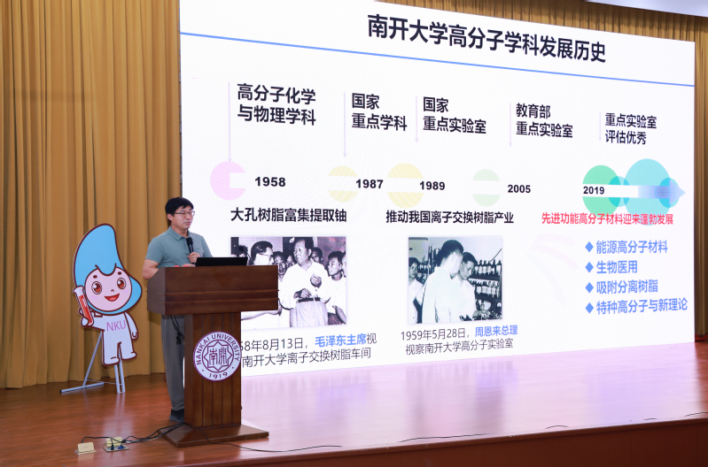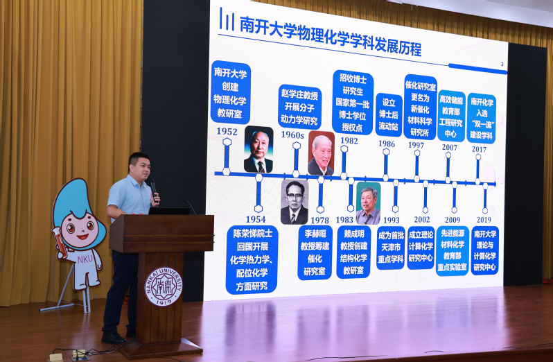 接着,汤平平以学科发展历史和团队建设基本情况为切入点,从历史底蕴、学科布局、科研平台、团队队伍、学术氛围和公司产品等方面逐一展开介绍,向营员们全面地展现了南开化学的悠久历史、鲜明特色和建设成果,表达了建设“探索化学前沿,服务国民经济”世界一流化学学科的愿景。