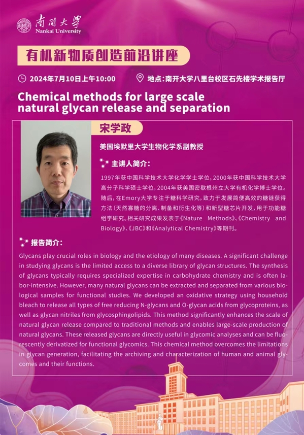 有机新物质创造前沿讲座:Chemical methods for large scale natural glycan release and separation