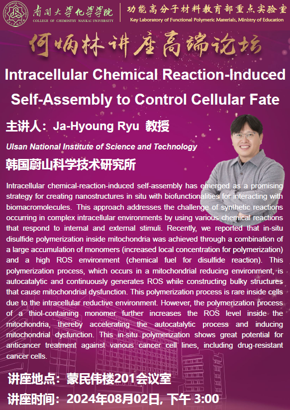 何炳林讲座高端论坛: Intracellular Chemical Reaction-Induced Self-Assembly to Control Cellular Fate