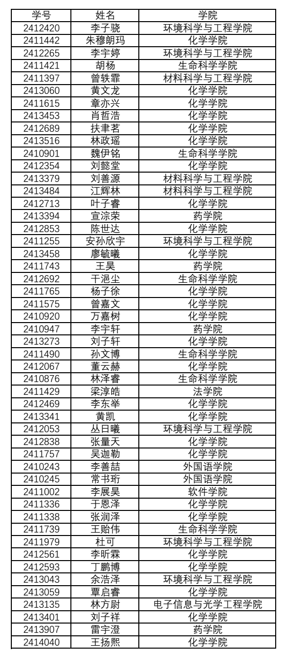 2024级化学(伯苓班)面试时间:9月2日(星期一)上午8:30,地点:化学楼中楼308会议室(八里台校区)。