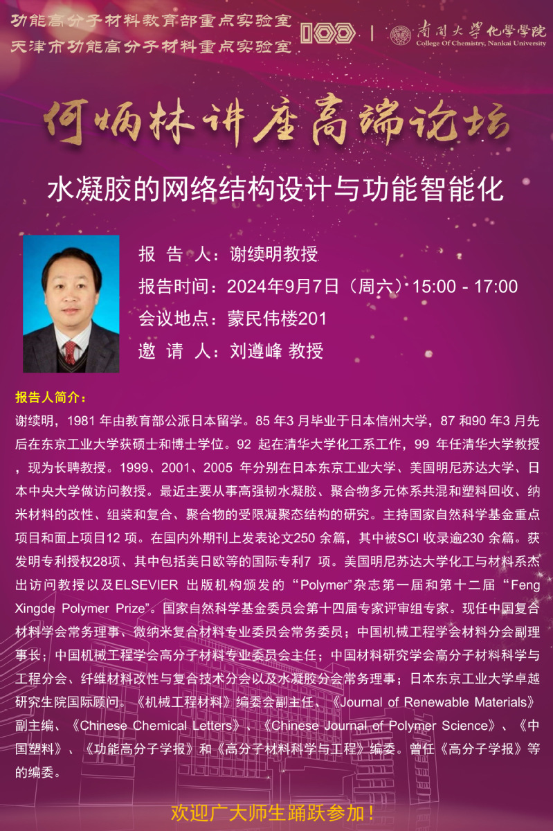 何炳林讲座高端论坛:水凝胶的网络结构设计与功能智能化