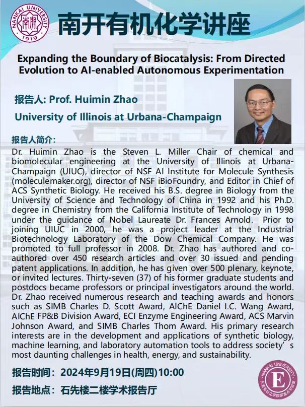 学术报告:Expanding the Boundary of Biocatalysis: From Directed Evolution to Al-enabled Autonomous Experimentation