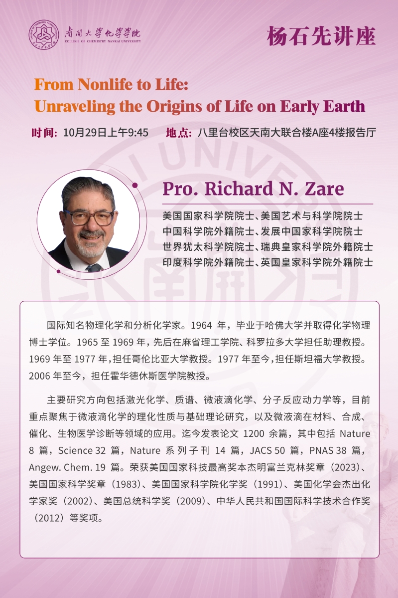 杨石先讲座:From Nonlife to Life-Unraveling the Origins of Life on Early Earth