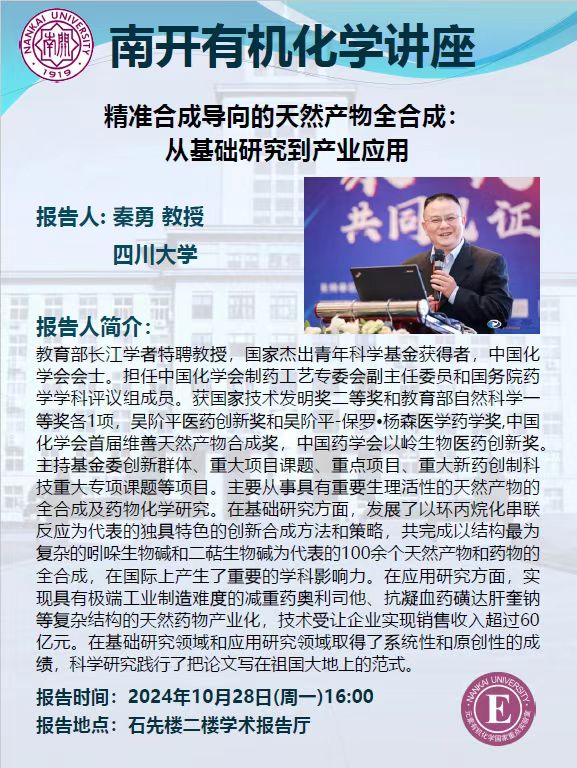 南开有机化学讲座:精准合成导向的天然产物全合成-从基础研究到产业应用
