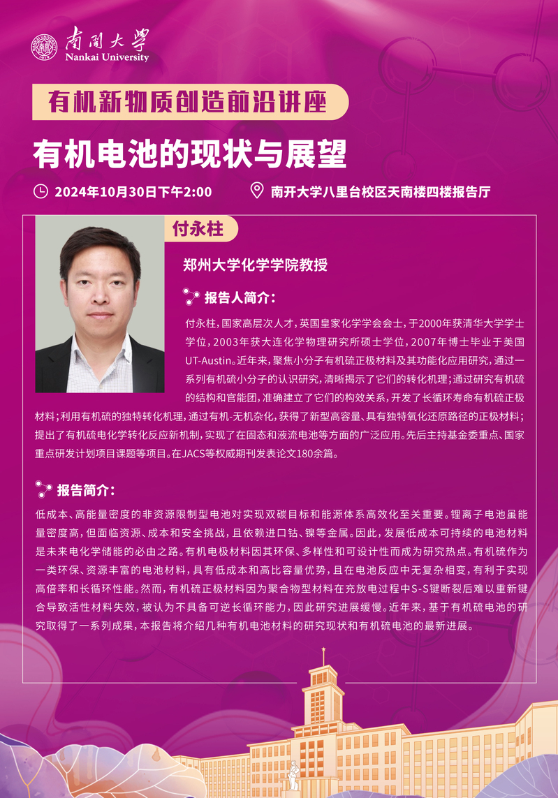有机新物质创造前沿讲座:有机电池的现状与展望