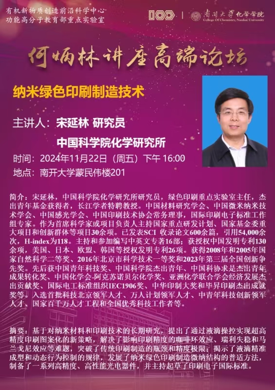 何炳林讲座高端论坛:纳米绿色印刷制造技术