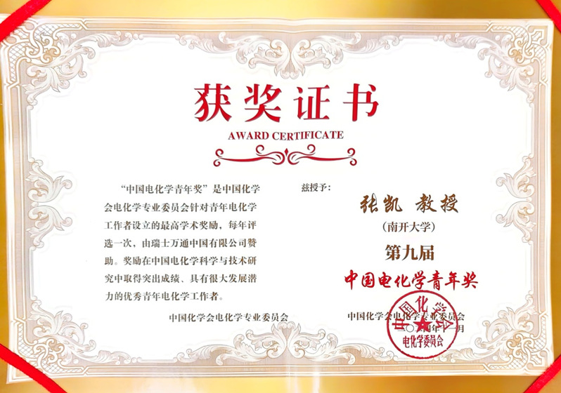 张凯研究员获中国电化学青年奖