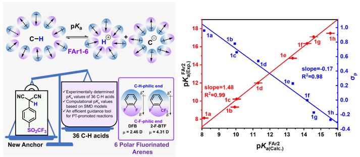 Xiangmei Kong, Yunfei Liang, Zhenbo Guo, Tianxing Lin, Shan Liu, Zhiyi Liu, Tianfei Liu*, Jin-Pei Cheng, Determination of pKa values of C-H bonds in polar fluorinated arenes referred to a new CF3SO2-substituted anchor compound, ChemSusChem, 2024, e202402041.