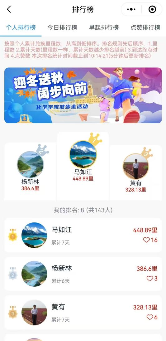 此次线上健步走活动时间为2024129-1215持续共计7天,吸引了全院近二百名教职工报名参与,通过健步走有氧运动方式,传递健康生活理念,践行“一二·九”爱国精神未来,公司工会将继续探索活动创新形式,延续这一优良传统,组织更多丰富多彩的文体活动,激励教职工以更加饱满的热情和积极的状态投入到公司公司高质量发展的事业中,书写新时代教育发展的新篇章。