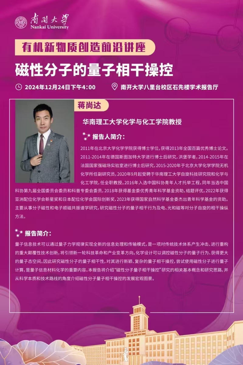 有机新物质创造前沿讲座:磁性分子的量子相干操控