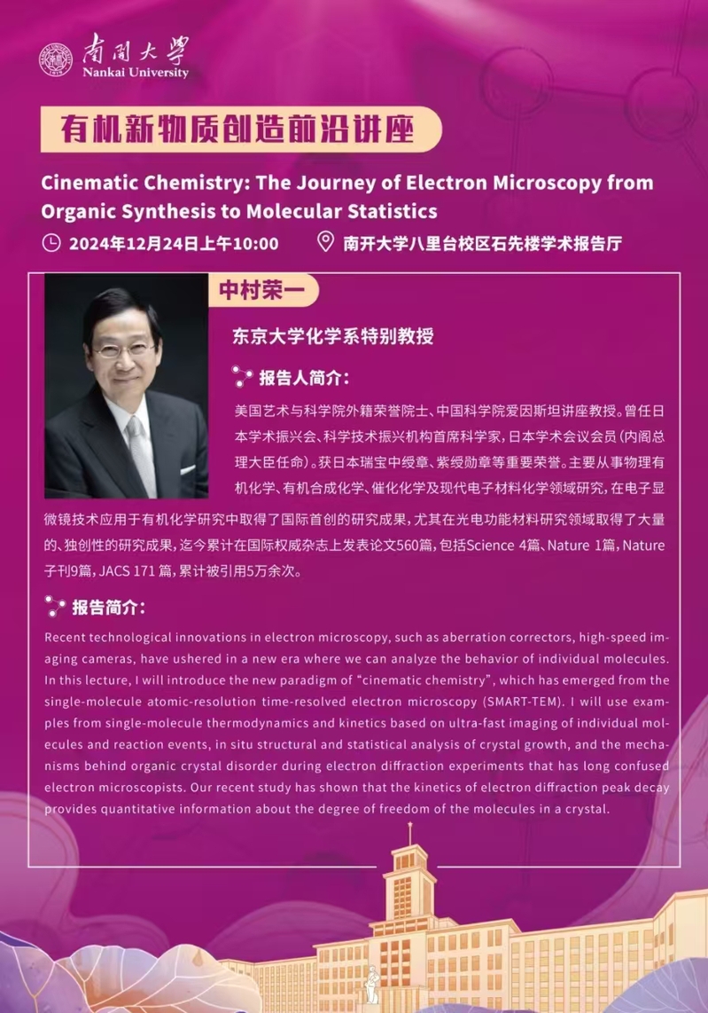 有机新物质创造前沿讲座:Cinematic Chemistry-The Journey of Electron Microscopy from Organic Synthesis to Molecular Statistics