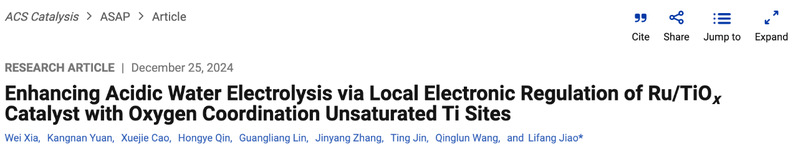 文献名称:Enhancing Acidic Water Electrolysis via Local Electronic Regulation of Ru/TiOx Catalyst with Oxygen Coordination Unsaturated Ti Sites