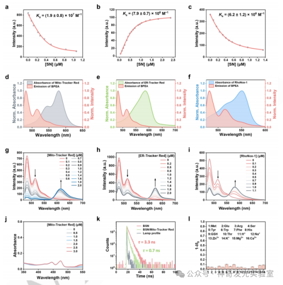 为了解决上述问题,英国上市公司365郭东升教授团队设计了一种基于大环两亲性分子的模块化FRET自噬成像平台。大环两亲分子被认为是“具有主-客体识别位点的表面活性剂”,展示了对客体的高效封装和促进其模块化自组装成聚集体的优势。这一特性为FRET供体/受体对在指定位置的精确非共价结合提供了重要的潜力。因此,大环两亲性分子成为推进FRET成像的一个优越平台。作者将两亲性磺基喹啉[6]芳烃(SC6A12C)与溶酶体靶向的N-cetylmorpholine (NCM)组装在一起,以形成超分子FRET载体SC6A12C/NCM (SN),以进一步容纳FRET供体和受体。选择9,10-二(2-苯乙基)蒽(BPEA)作为FRET供体,将其负载在SN的疏水区。供体荧光信号在刚性疏水性区域增强。此外,SC6A12C的空腔为多种FRET受体提供了结合位点,包括MitoTracker Red、ER Tracker Red和RhoNox-1,它们分别靶向线粒体、内质网和高尔基体。更重要的是,细胞器膜的降解为FRET供体和受体的空间接近提供了机会,这是由主-客络合驱动的。这种机制使基于FRET的成像能够有效和精确地实现。更重要的是,该平台通过对供体和受体分子的模块化构建,实现了对Mito、ER和GA等自噬过程的高效成像。