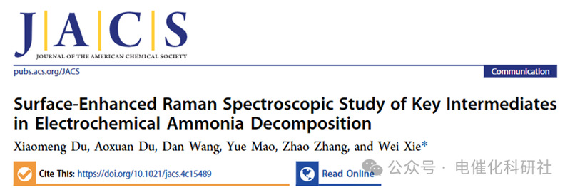 Xiaomeng Du, Aoxuan Du, Dan Wang, Yue Mao, Zhao Zhang, and Wei Xie, Surface-Enhanced Raman Spectroscopic Study of Key Intermediates in Electrochemical Ammonia Decomposition, Journal of the American Chemical Society, DOI: 10.1021/jacs.4c15489, https://doi.org/10.1021/jacs.4c15489