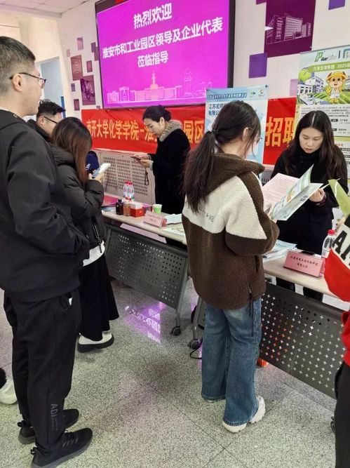 高层次人才招聘活动在主会场外同步进行,招聘会现场气氛热烈,来自淮安工业园区的八家优质企业设置招聘席位,吸引了大批化学、材料等专业的本、硕、博应届毕业生。企业招聘人员热情地向同学们介绍企业的发展前景、岗位需求、福利待遇等情况,同学们积极响应国家就业政策,踊跃参与招聘,就企业发展、岗位晋升及淮安市“购房补贴+安家费”等相关人才政策与招聘人员展开咨询。
