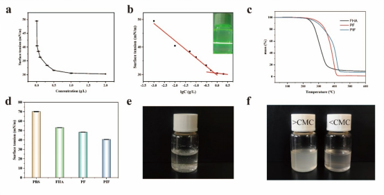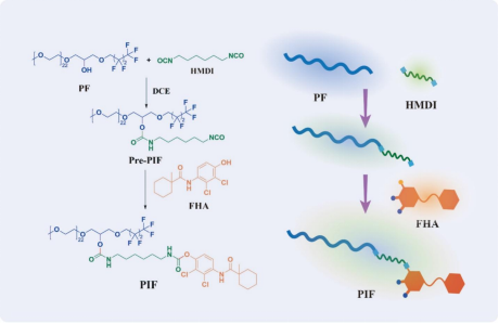 基于以上背景和讨论,通过两步一锅法合成了一种疏水性农药环酰菌胺(FHA)的含氟表面活性剂功能化递送体系(PIF)。确定其结构以后研究了这一功能化分子在水溶液中理化性质和自组装行为。