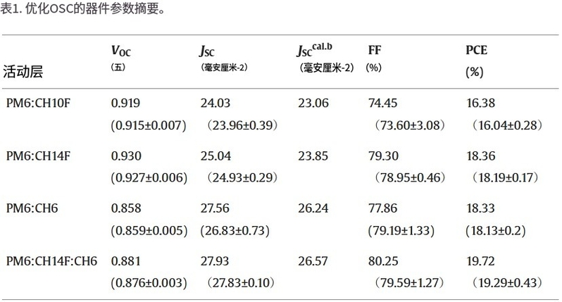 低聚小分子受体(OSMAs)可以结合小分子受体 (SMAs)和聚合受体(PSMAs)的优点,包括明确的分子结构、高玻璃化转变温度和低扩散速率。然而,分子对称性和平面性的降低通常会降低分子间堆叠强度和有序性,从而降低有机太阳能电池的功率转换效率。在此,在 OSMAs 的二维平面的外围进行了最大的氟化,产生了 CH14F 的14个含氟二聚体受体,在目前所有 OSMAs 中提供了最富氟的分子骨架。骨架的充分外周氟化导致分子堆积更紧凑有序,从而提高了 OSCs 的填充因子。结果,PM6:CH14F:CH6 三元器件实现了 19.72% 的一流 PCE。更重要的是,PM6:CH14F 装置在 65 ℃下连续加热 1032 小时后,仍保留了超过 80% 的初始 PCE。此项工作表明,在 OSMAs 上实施足够的外周氟化可以通过显着增强的氟诱导的次级相互作用来克服分子堆积紊乱,从而同时为具有出色效率和稳定性的 OSCs 提供新的见解。